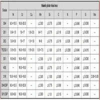 Thành phấn hóa học của inox 304 và inox 201